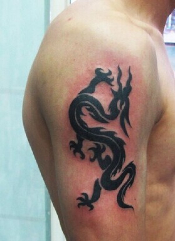 龙纹身手稿_一组老传统黑灰龙手稿纹身图案