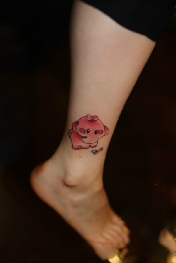 可爱粉色小象脚踝纹身图片