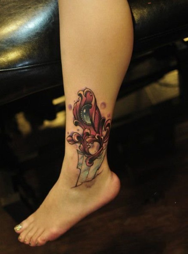分享一款脚踝莲花纹身图案_脚部纹身图案大全_纹身图吧