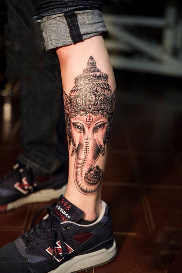小腿上一款大象纹身图案_腿部纹身图案大全_纹身图吧