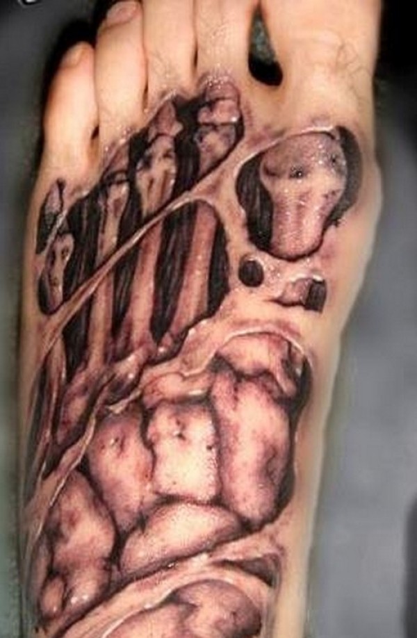 一款脚背撕皮纹身图案