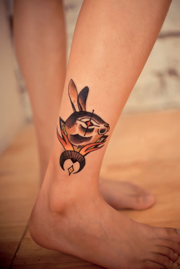脚踝个性兔子头时尚纹身图片