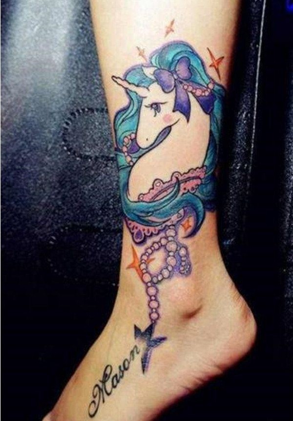 脚踝彩色独角兽纹身