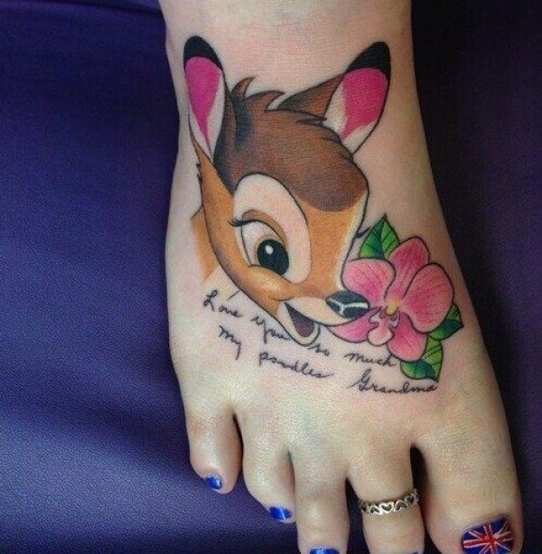 脚背彩色可爱小鹿纹身图片