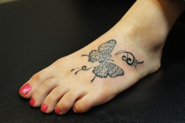 女生脚部清新漂亮蝴蝶腾图纹身图图片