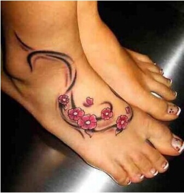 清新小桃花脚踝纹身_脚部纹身图案大全_纹身图吧
