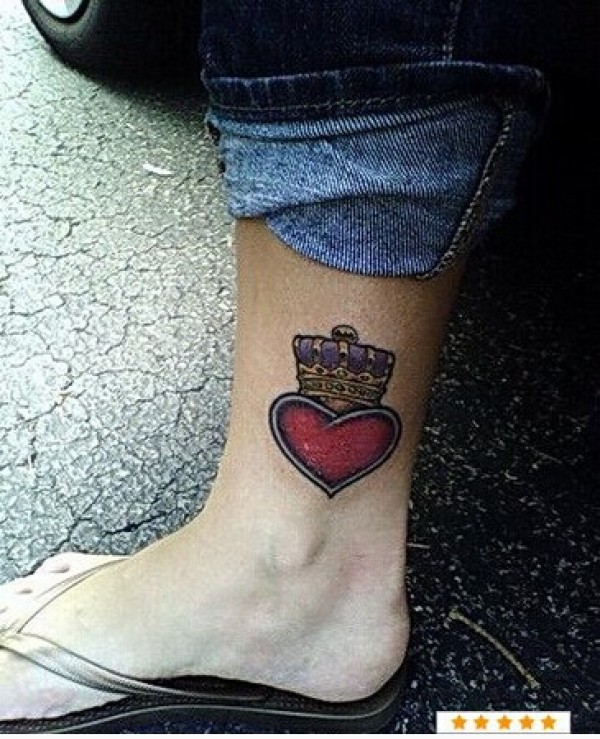 牛仔男生脚部酒红色的心,皇冠纹身图图片