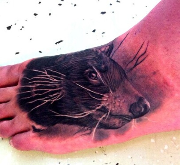 男生脚部经典漂亮的动物头纹身图案