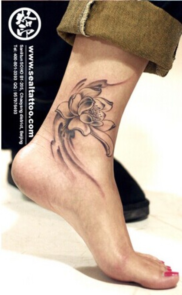 分享一款脚踝莲花纹身图案_脚部纹身图案大全_纹身图吧