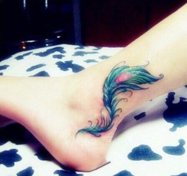 彰显女生高贵气质的孔雀羽毛纹身图片