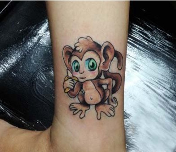 一张脚踝可爱的猴子纹身图案 图片