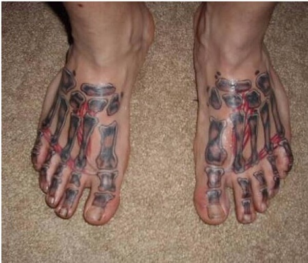 脚部创意经典骨骼纹身图案