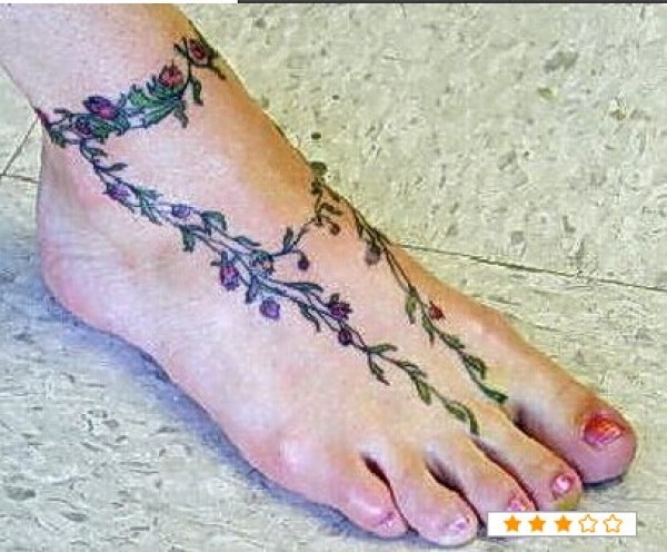 女生脚部漂亮花藤纹身图图片