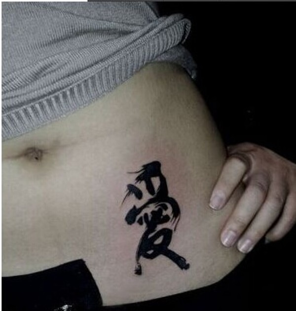 美女腰部唯美文字爱字纹身图片