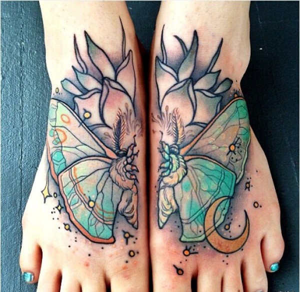 女生脚部漂亮好看的一对蝴蝶图腾纹身图片