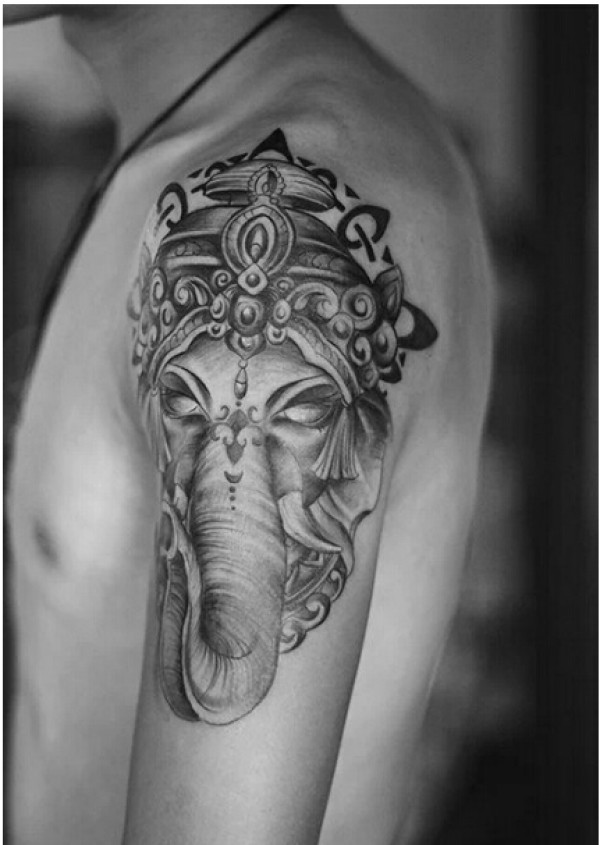 手臂上一款漂亮好看的黑灰象神纹身图图片