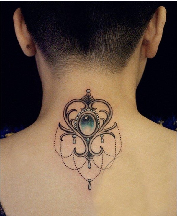 后颈部纹身小图--9张女生脖子后颈处的简约纹身图案
