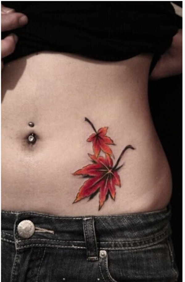 时尚女生腹部漂亮好看的枫叶纹身图片图片