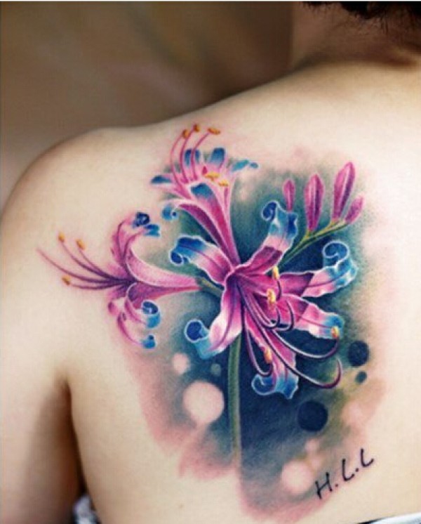 女生肩花纹身_15张女性双肩对称的肩花纹身图案作品图片