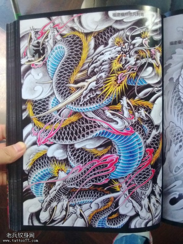 龙纹身手稿_一组老传统黑灰龙手稿纹身图案