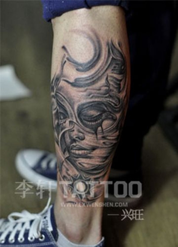 能面万媚纹身手稿_52张日式能剧面具纹身手稿图案素材欣赏