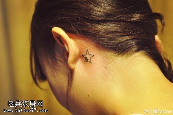 多款女生耳后黑色线条素描文艺小清新小图案纹身图案