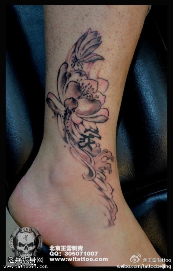 分享一款脚踝莲花纹身图案_脚部纹身图案大全_纹身图吧