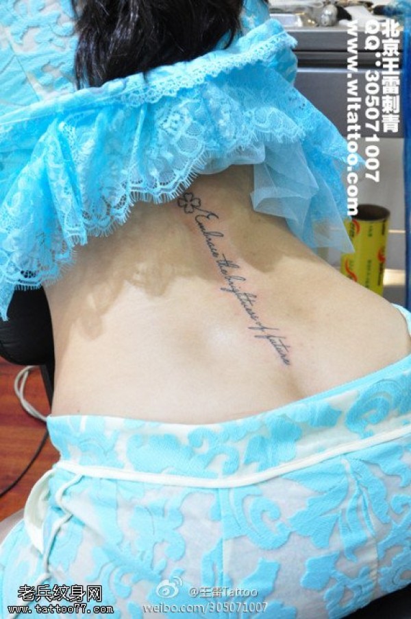 女生后腰纹身黑白灰风格抽象线条纹身图案