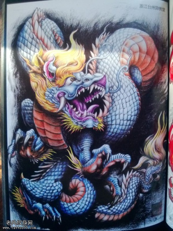 龙纹身手稿_一组老传统黑灰龙手稿纹身图案