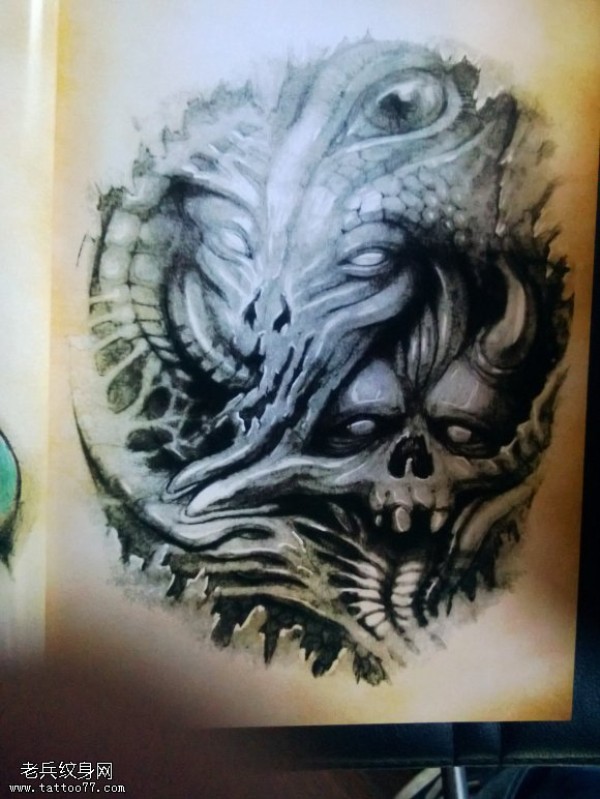 龙纹身手稿_一组老传统黑灰龙手稿纹身图案