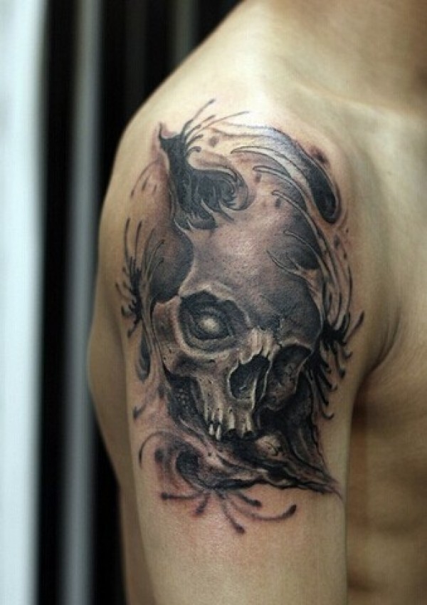 超帅时尚的黑灰骷髅与蛇纹身图案