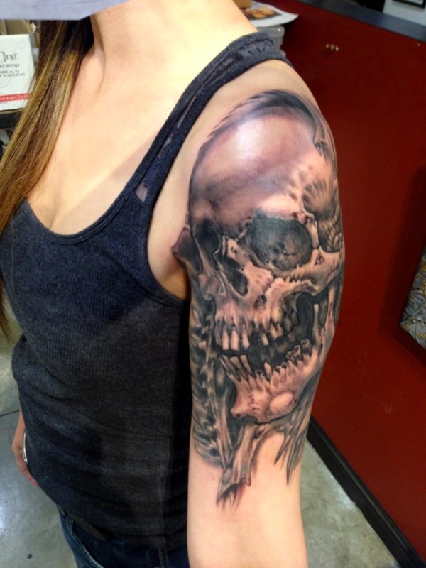 大臂霸气的骷髅纹身