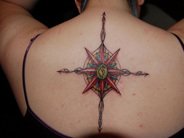 背部漂亮的指南针纹身
