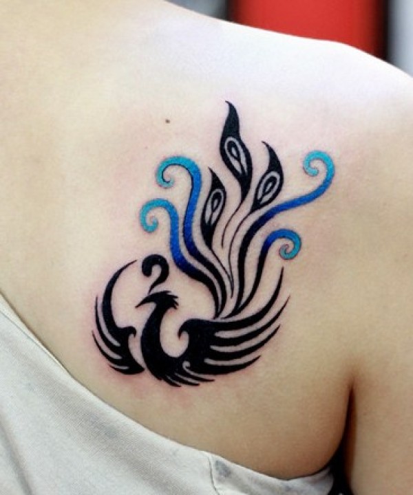 女生肩部时尚的凤凰图腾纹身