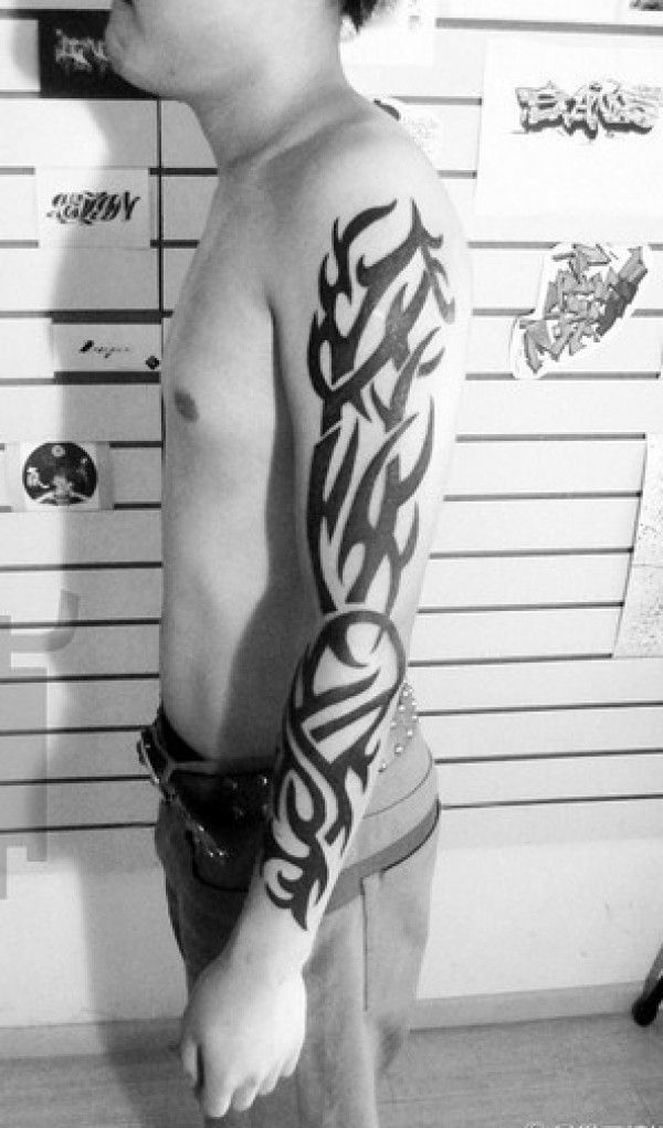时尚大气的图腾花臂纹身