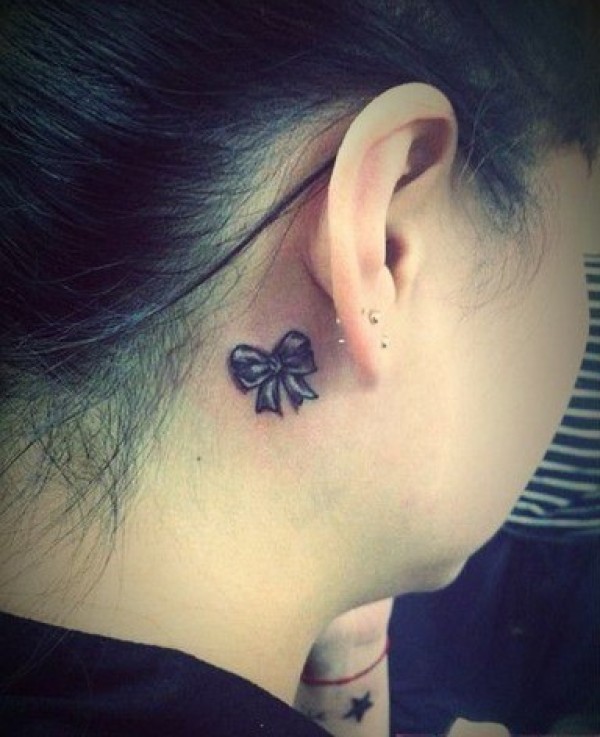 耳朵后面可爱的蝴蝶结纹身