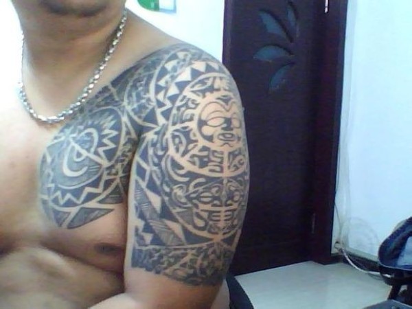 男性超帅气的黑色半甲部落图腾纹身图案