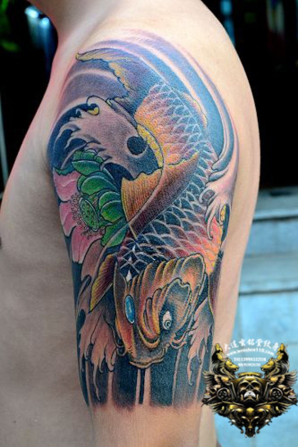 大连纹身 上臂鲤鱼纹身