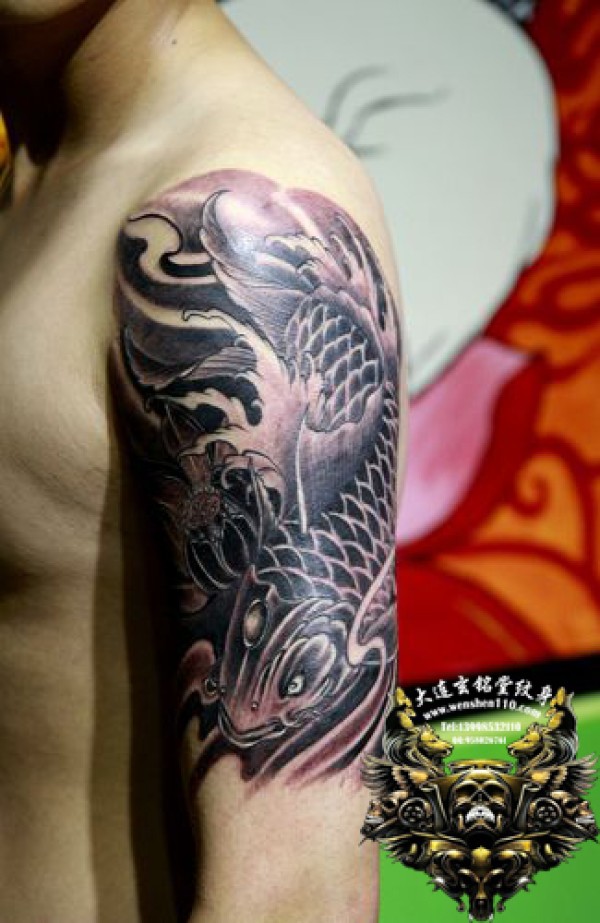 大连纹身 上臂鲤鱼纹身