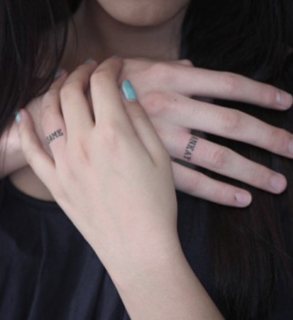 手指上小小的情侣图腾纹身