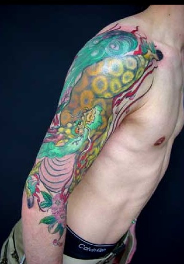 日式手彫刺青作品—半甲龙很感谢客户认可手彫刺青,手彫是日本纹身的手工雕刻技术,时间可以追溯到日本17世纪的江户时代。19世纪,手彫技术被日本黑帮挪用,被用作入会仪式,象征着从此就是江湖中人。在日式传统