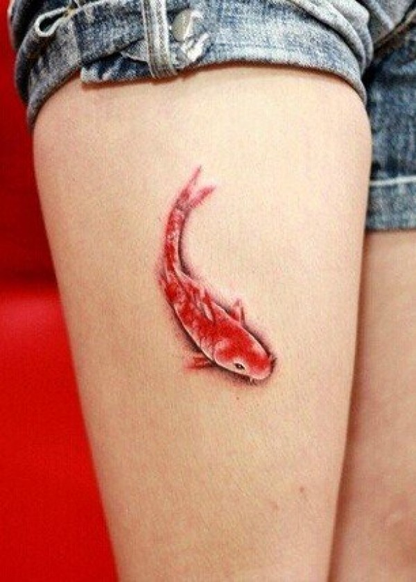 传统鲤鱼花小腿纹身_腿部纹身图案大全_纹身图吧