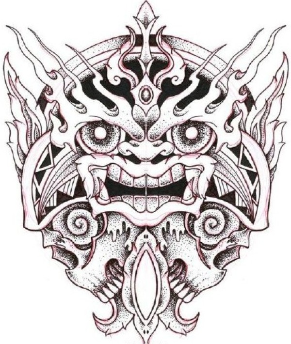 传统艺妓般若纹身图案手稿