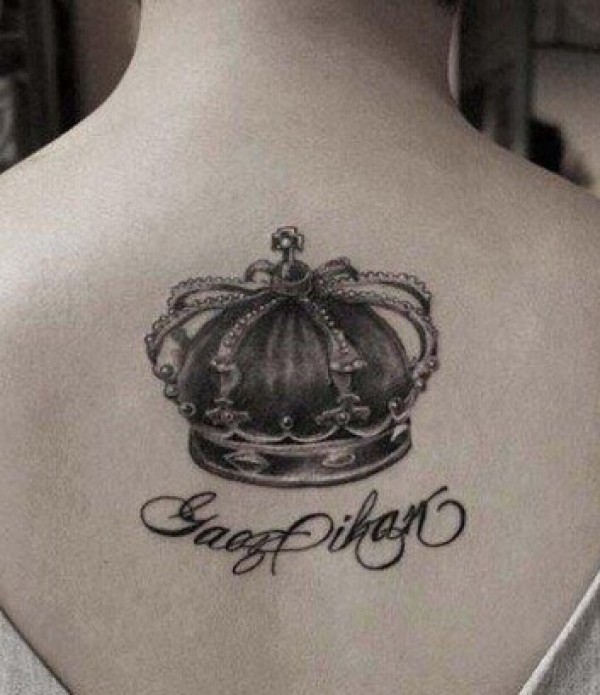 背部时尚个性的皇冠英文纹身
