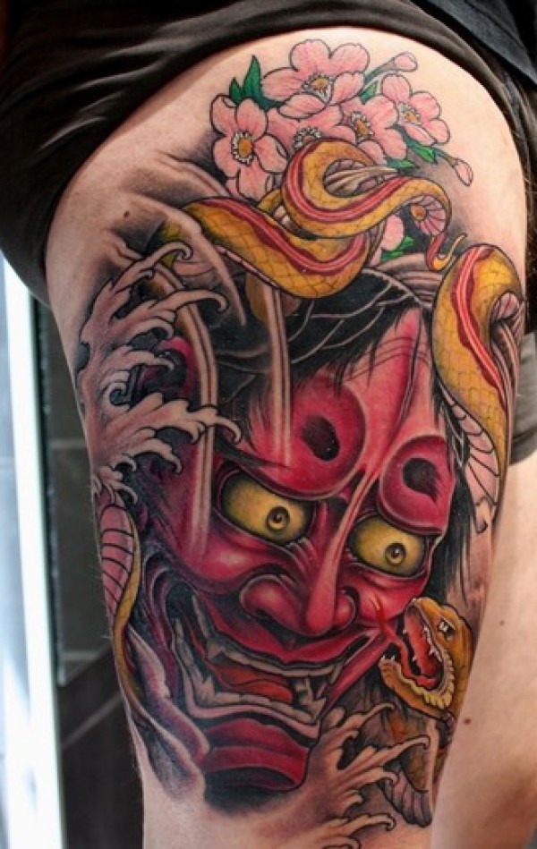 传统花腿纹身--18张传统风格的大花腿纹身图案作品