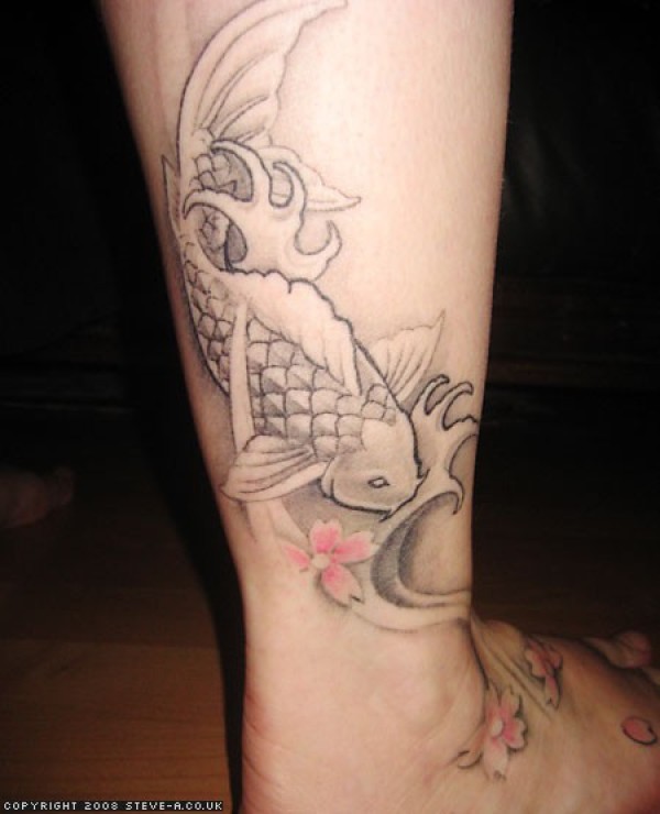 传统鲤鱼花小腿纹身_腿部纹身图案大全_纹身图吧
