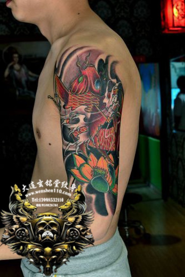 大连纹身上臂彩色鲤鱼纹身