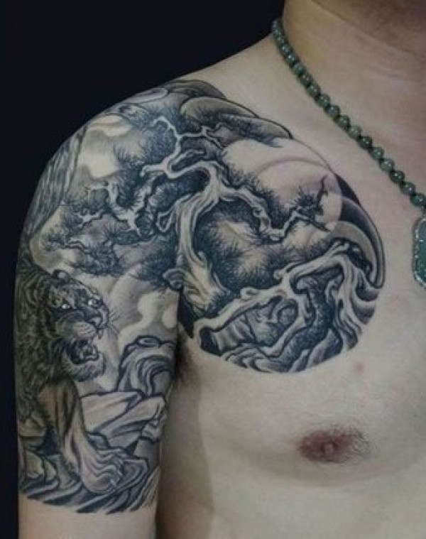 霸气半胛老虎纹身_动物纹身图案大全_纹身图吧