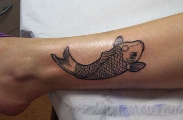 传统鲤鱼花小腿纹身_腿部纹身图案大全_纹身图吧