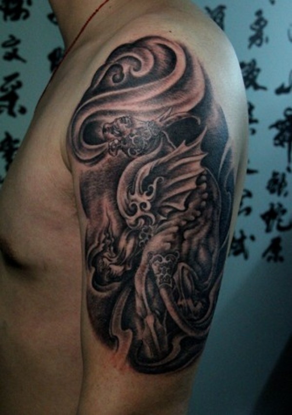 龙纹身手稿_一组老传统黑灰龙手稿纹身图案